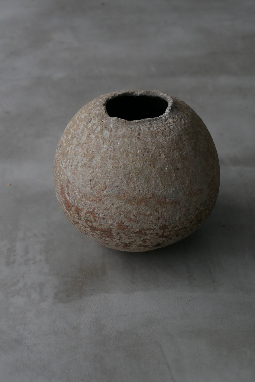 日置哲也が取り組む釉薬と土が一体となる表現から生まれた球体。360度違う景色が地球儀を思わせます。古代の地層から掘り出されたような景色と球体というモダンな造形が日置哲也らしいバランス感覚です。
