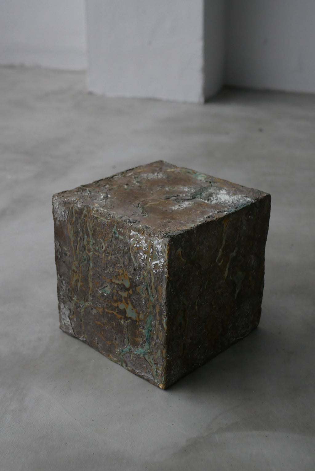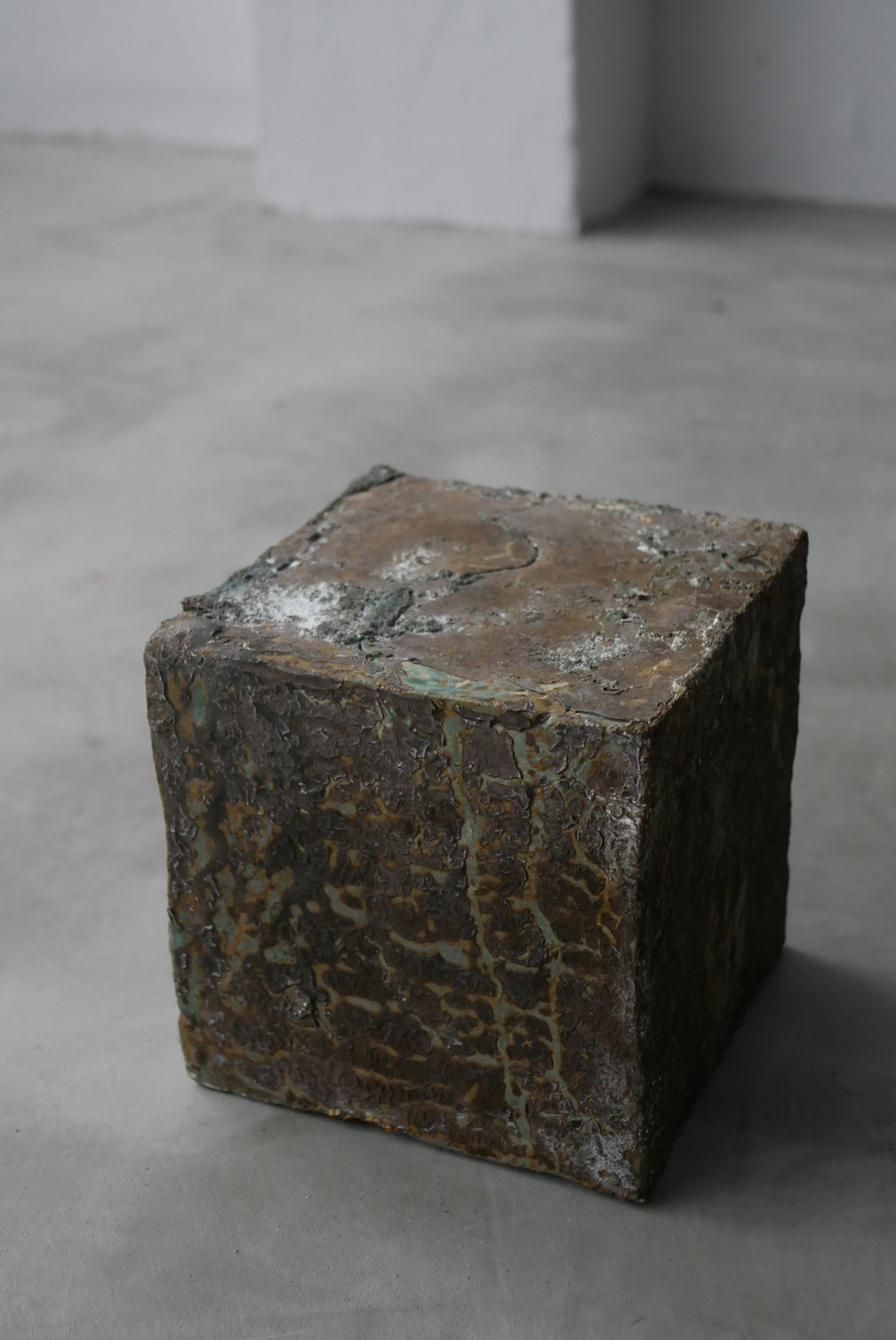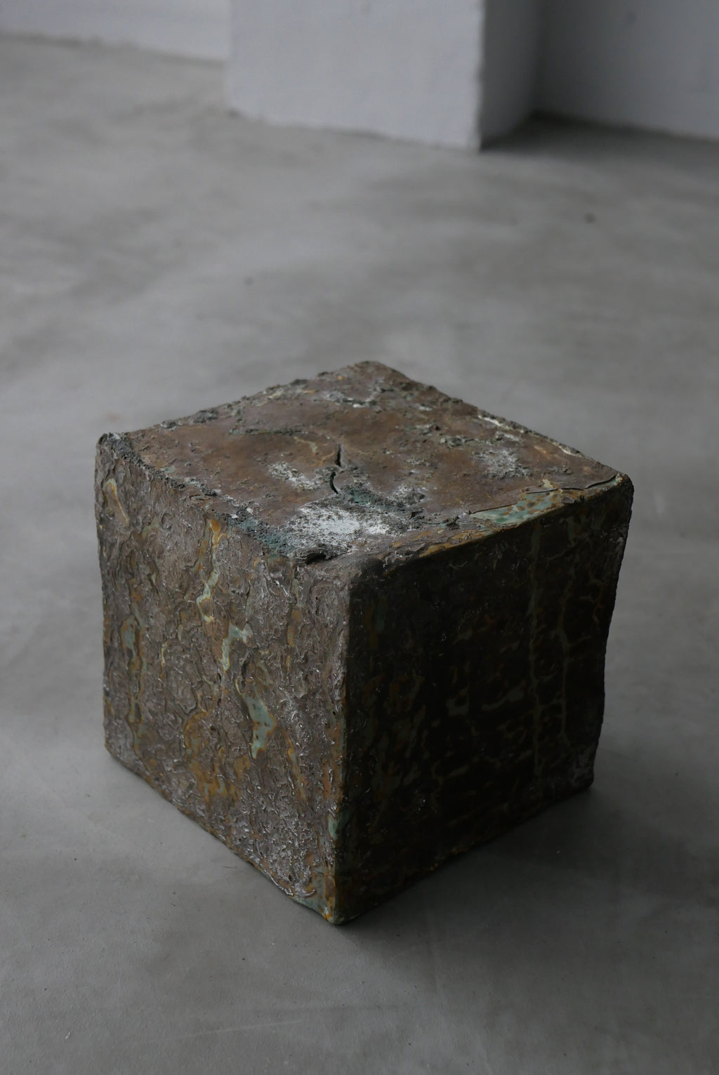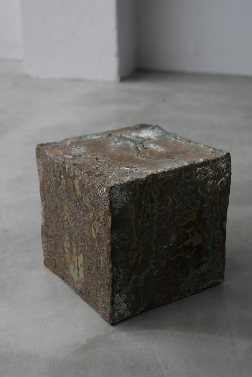 日置哲也が取り組む釉薬と土が一体となる表現から生まれた球体。360度違う景色が地球儀を思わせます。古代の地層から掘り出されたような景色と球体というモダンな造形が日置哲也らしいバランス感覚です。