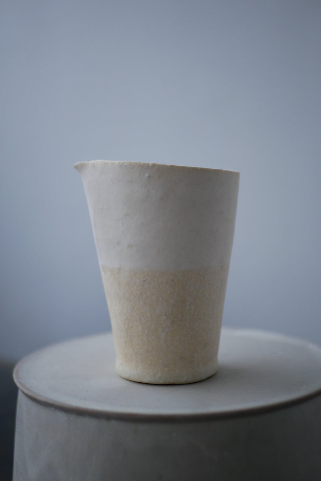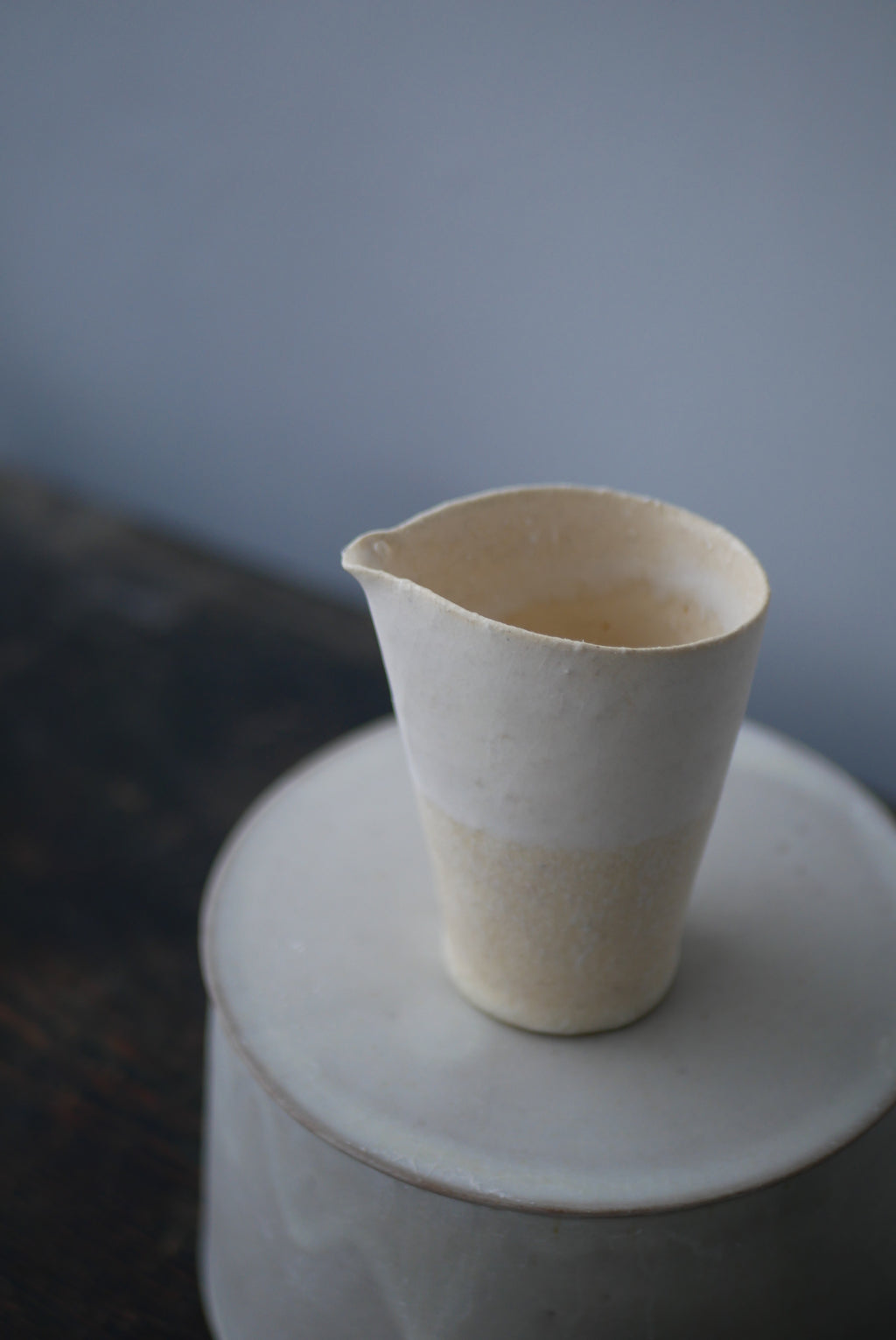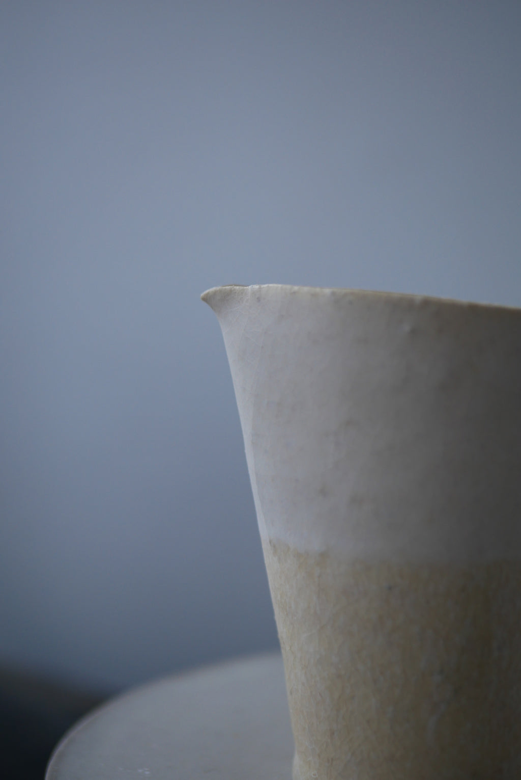 同じ釉かけ分けで筒湯呑みのcup、花器、台皿の展開がございます。石肌のシリーズとも相性が良く並べて集めて頂きたい作品です。