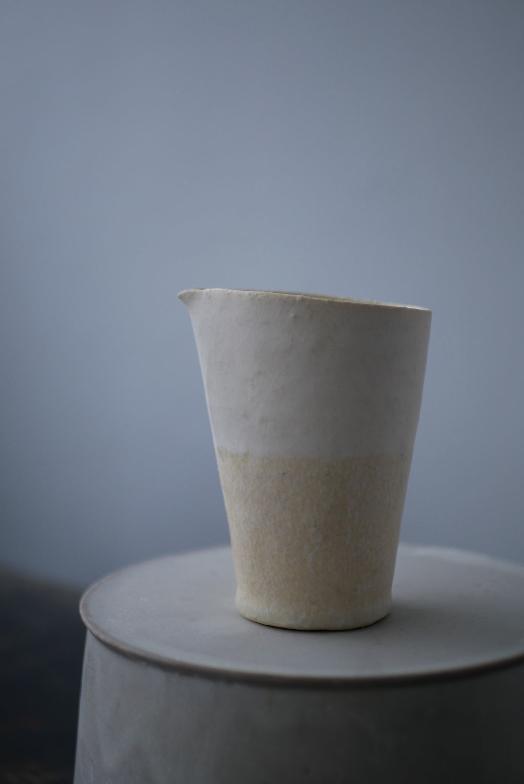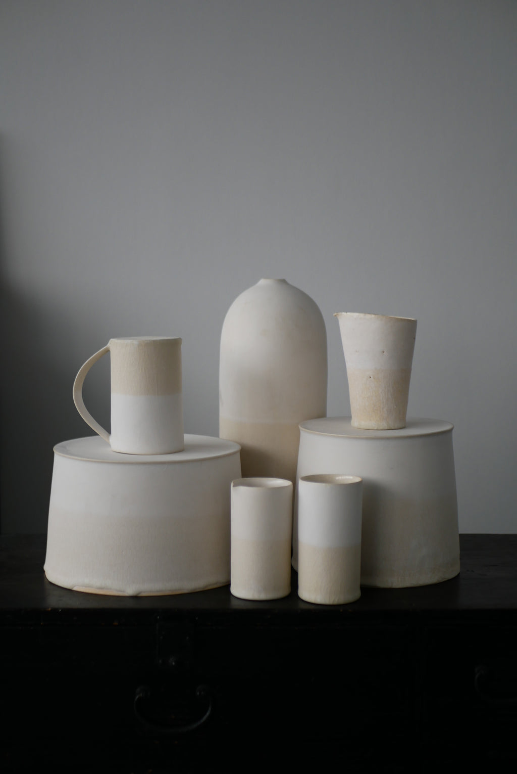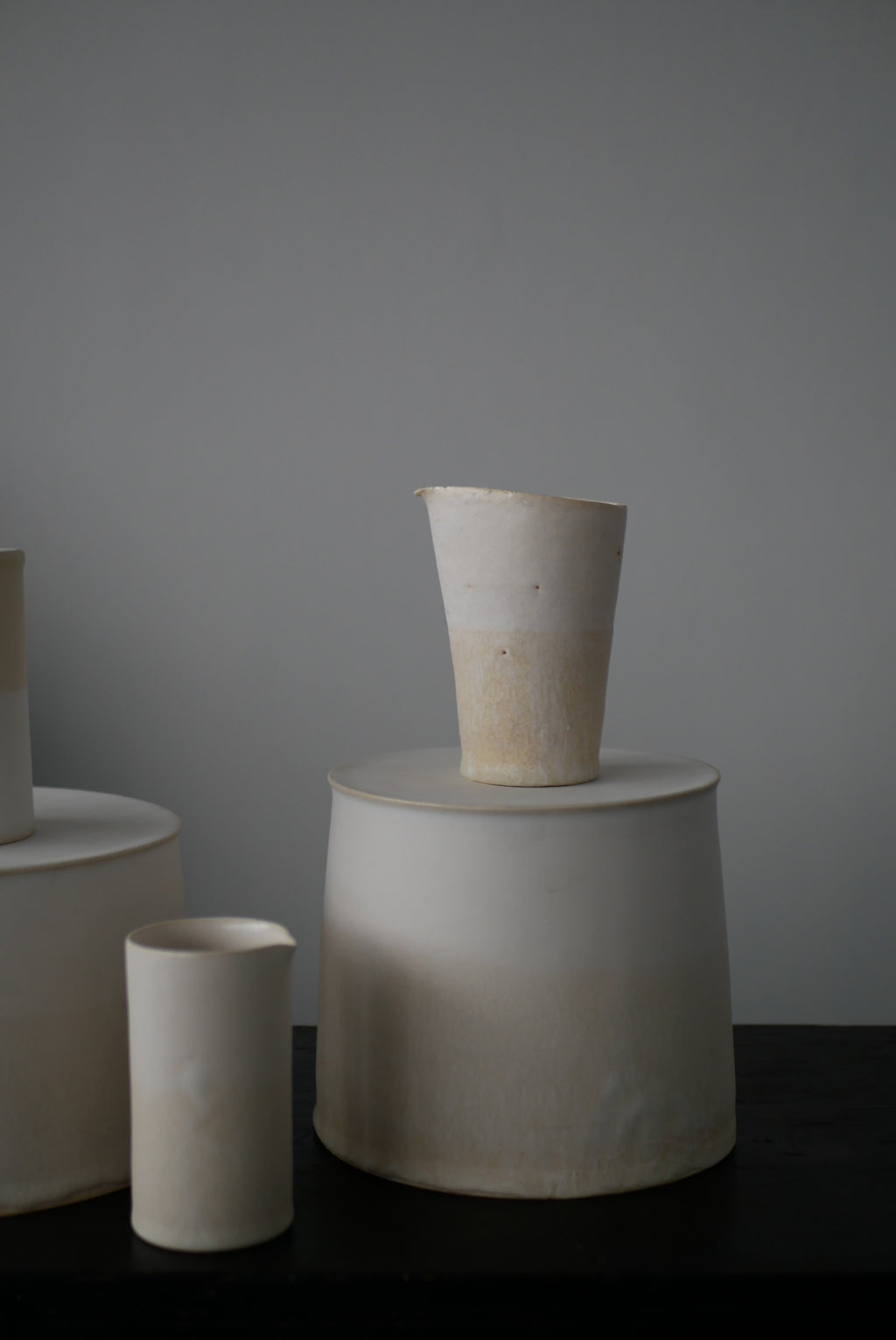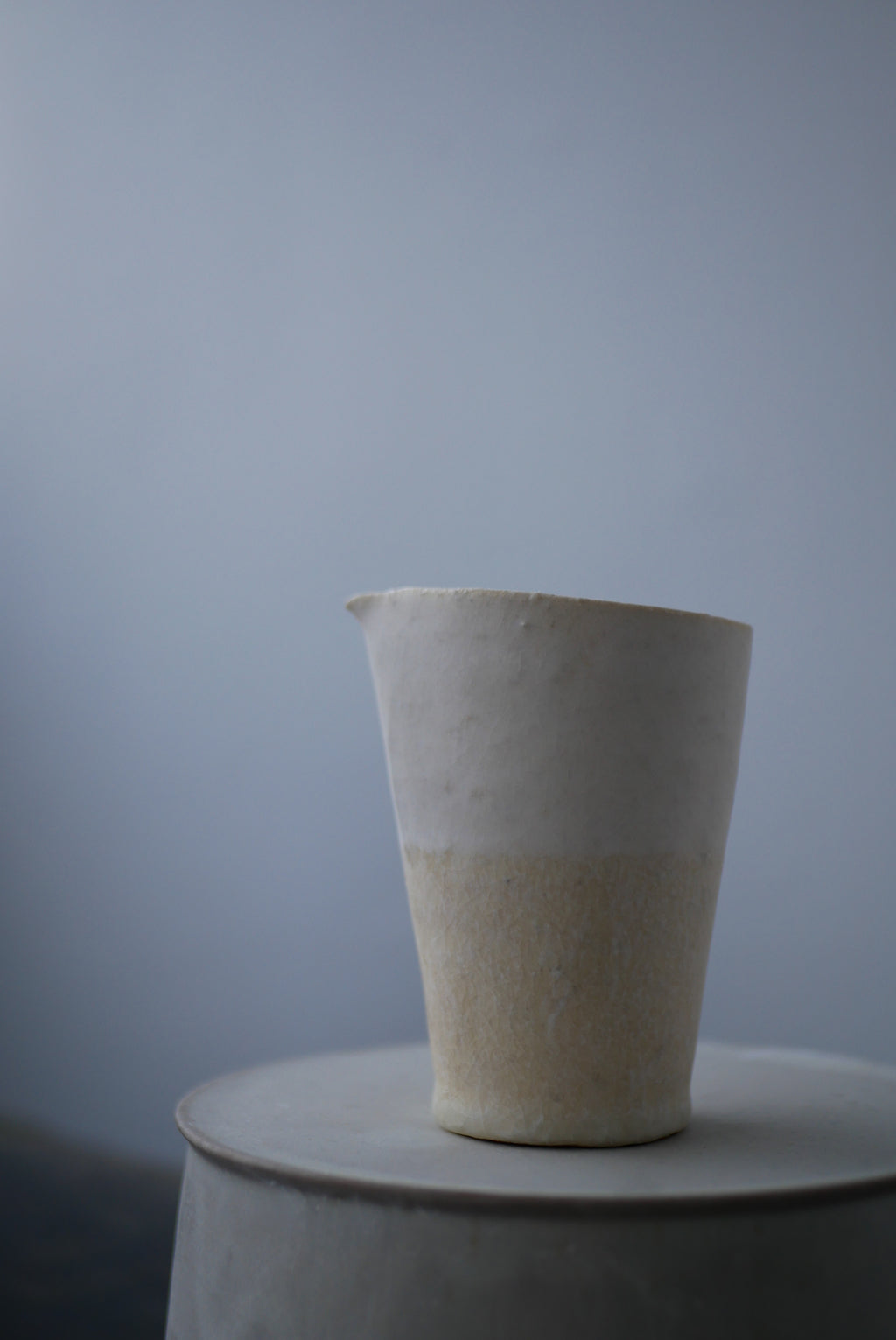 同じ釉かけ分けで筒湯呑みのcup、花器、台皿の展開がございます。石肌のシリーズとも相性が良く並べて集めて頂きたい作品です。
