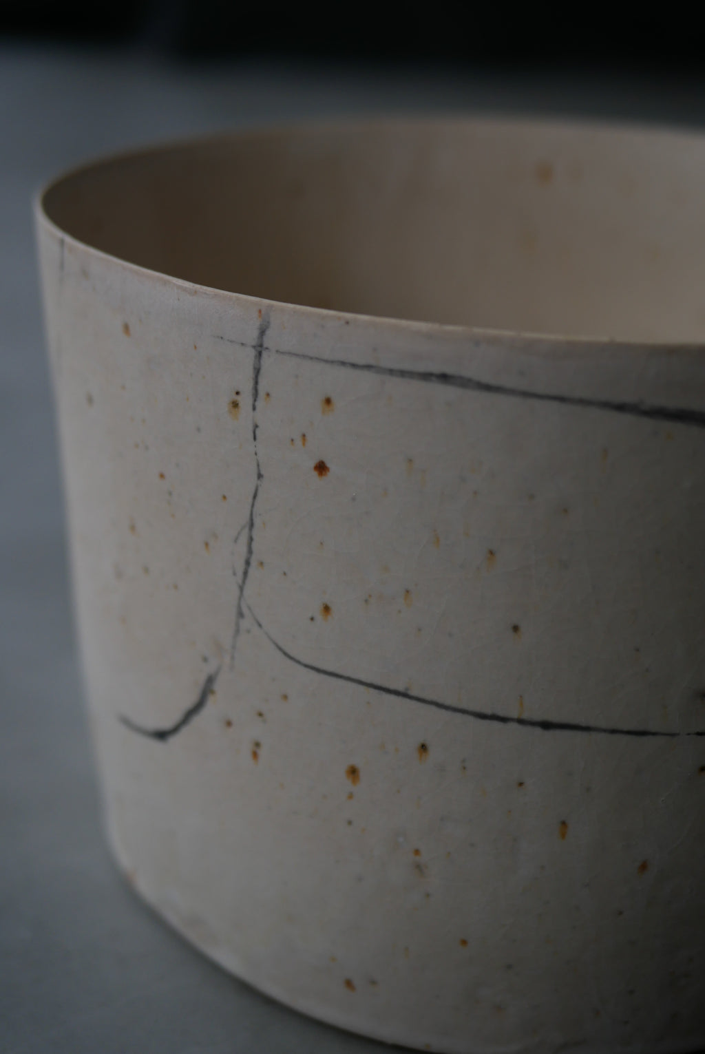 土の質感と自然にふくまれる鉄分の景色を活かした陶におけるドローイング。
