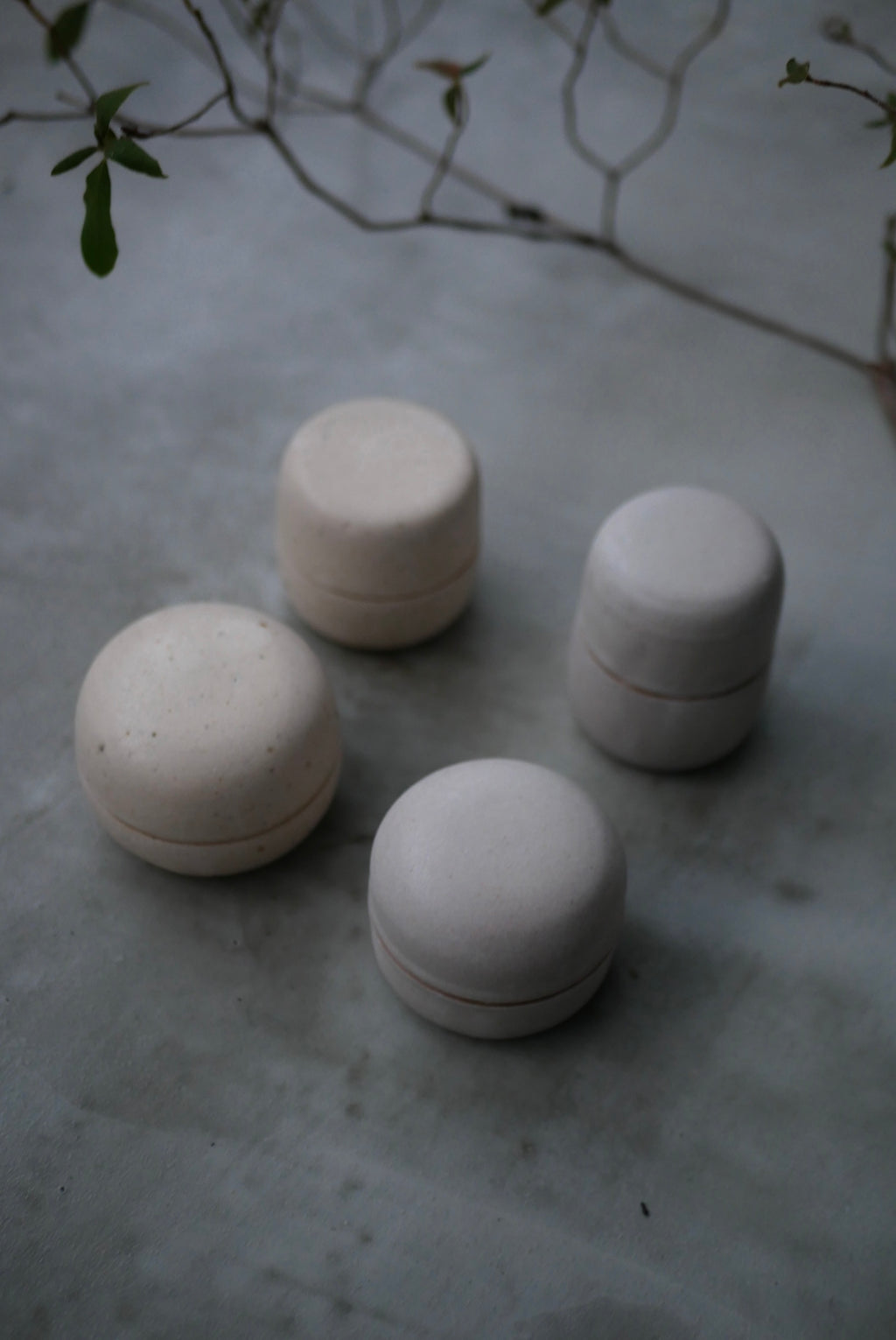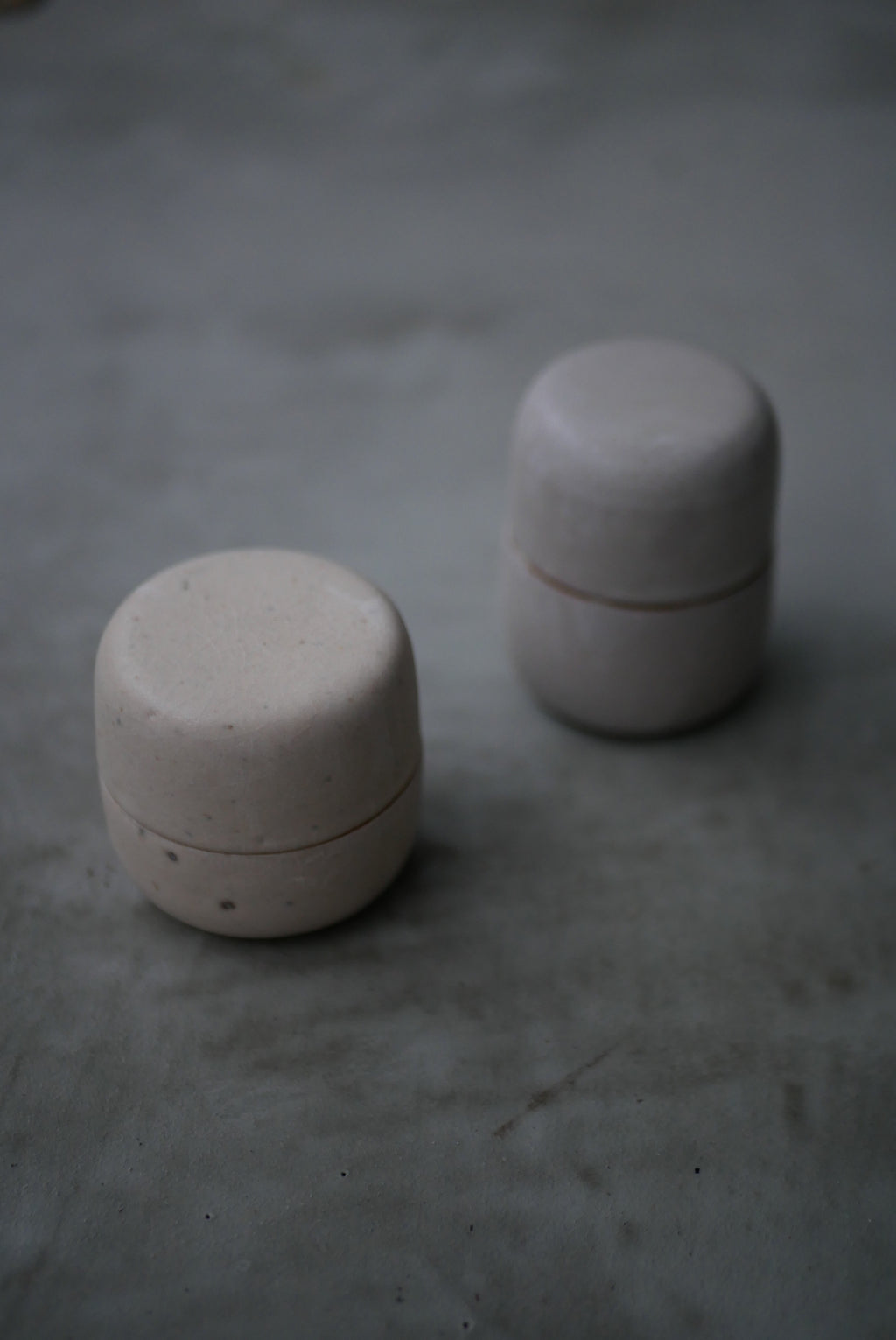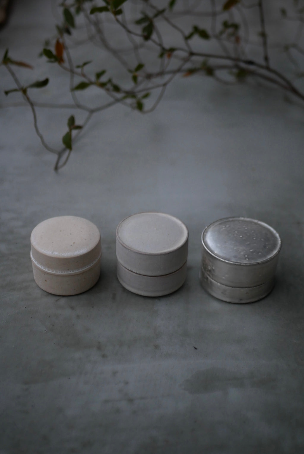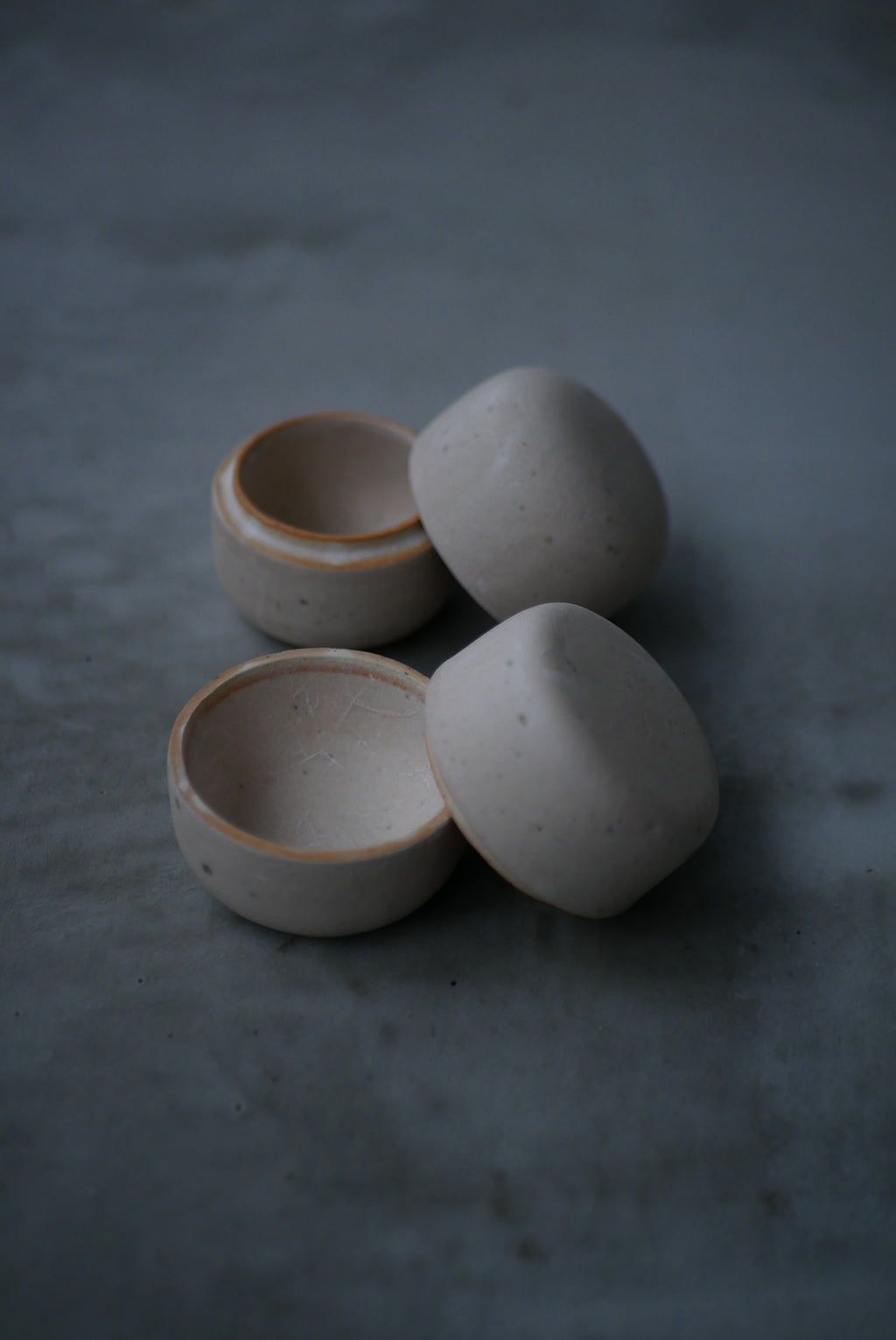 蓋物に心惹かれてきたAkari Sato。それぞれの質感に心のままに造形をのせた作品。