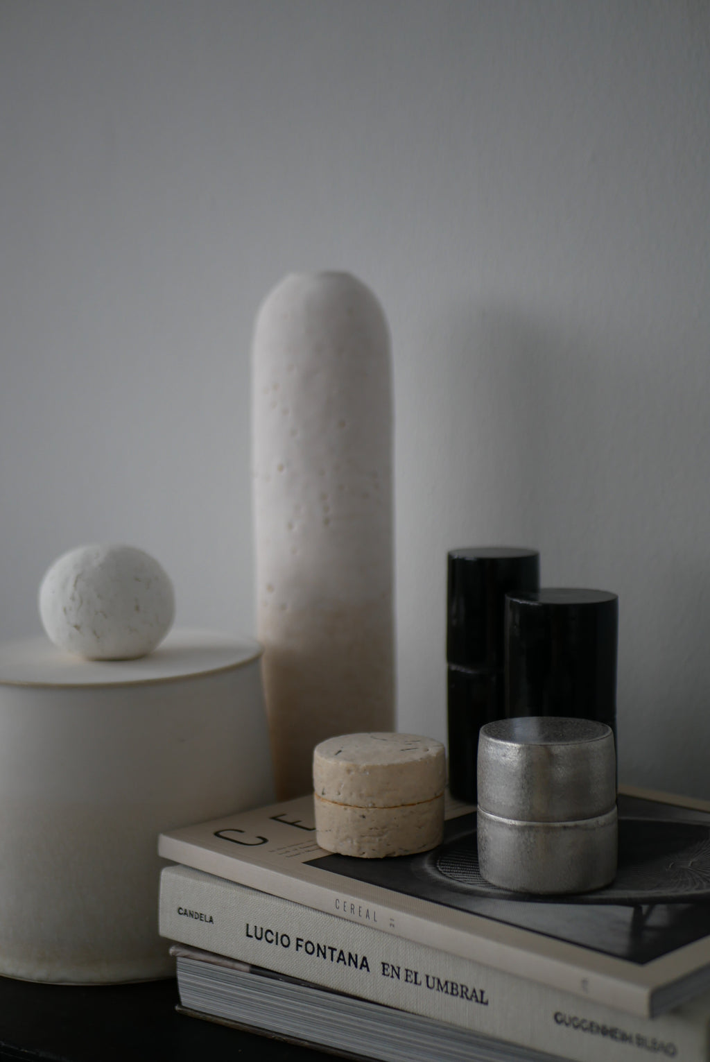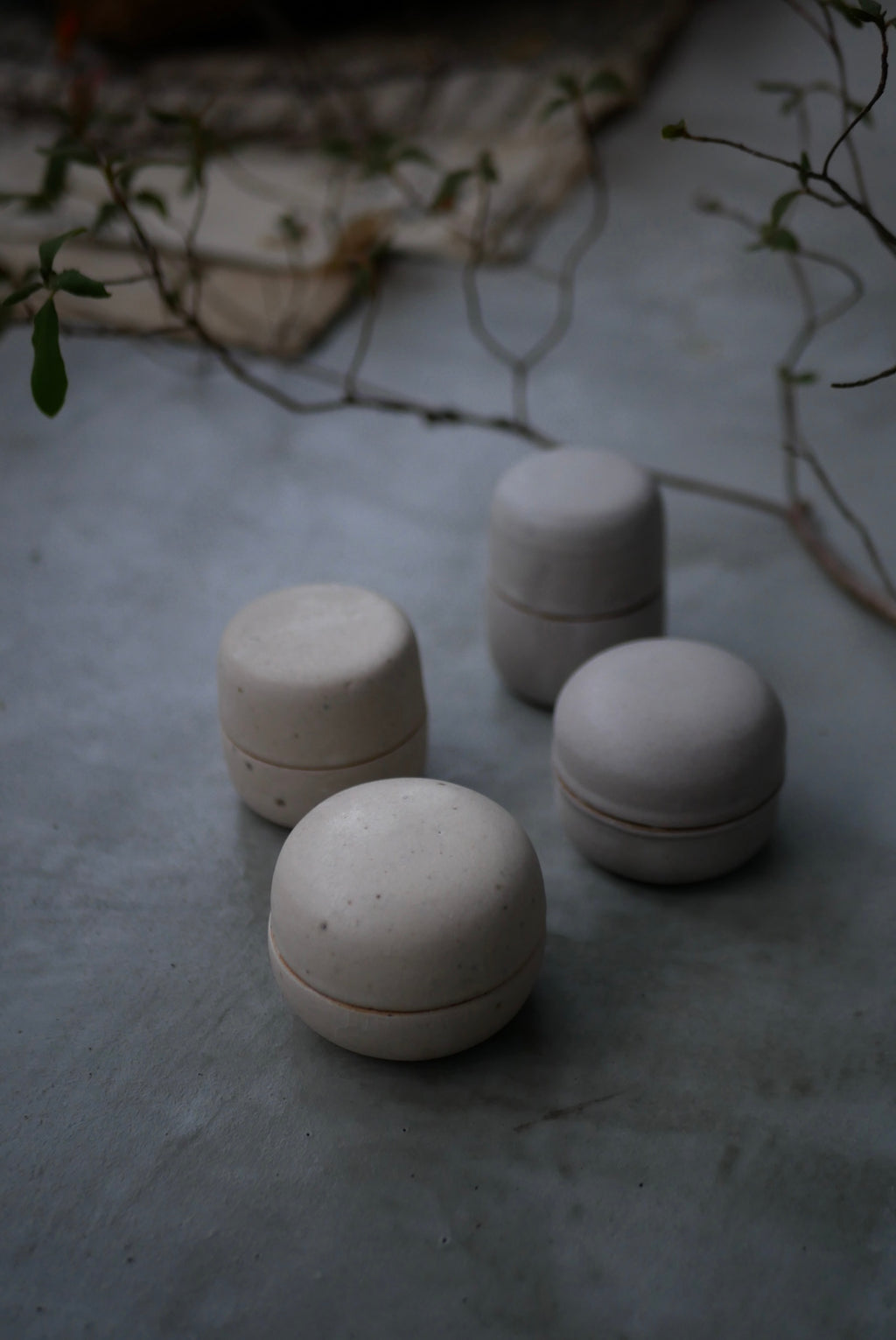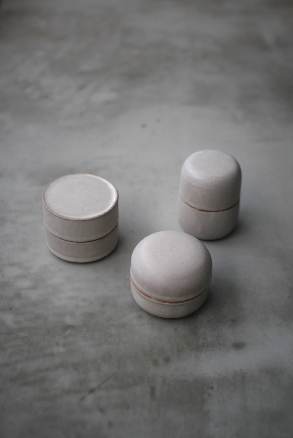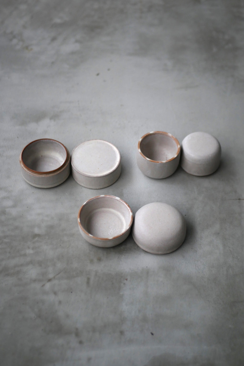 蓋物に心惹かれてきたAkari Sato。それぞれの質感に心のままに造形をのせた作品。
