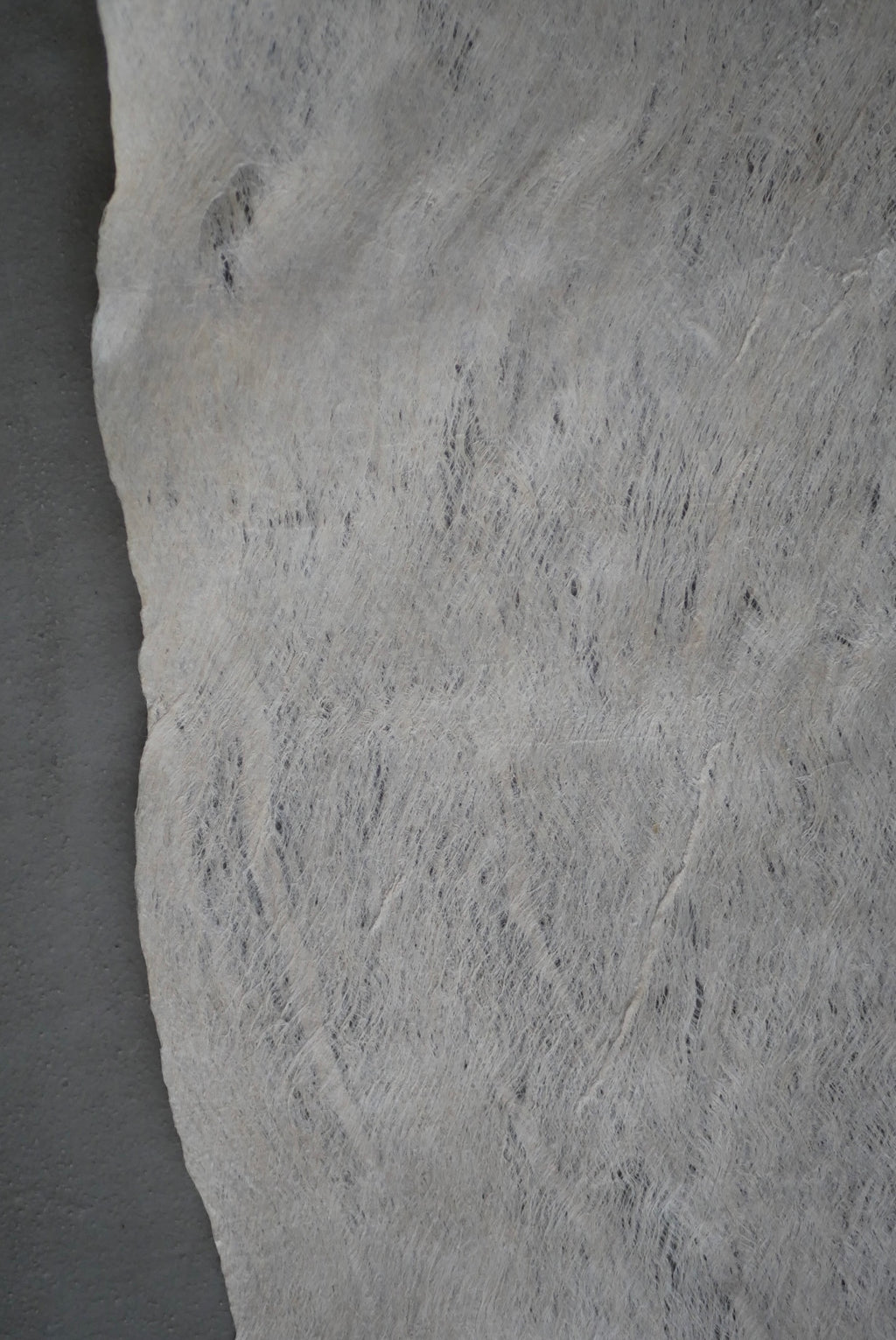 和紙の主原料である楮を用い、ひたすらに叩いてのばすことで布にしています。この布とも紙とも呼べる素材は、薄さに対して強く、ハリコシがあり、うっすらと発光するような光沢感。プリミティブと上品さを合わせもつ存在です。古物にもよく似合い、茶を嗜む方にもおすすめです。丸めて簡単に持ち運ぶこともできます。密度や長さもさまざま、厚みのあるものは手洗いが可能です。