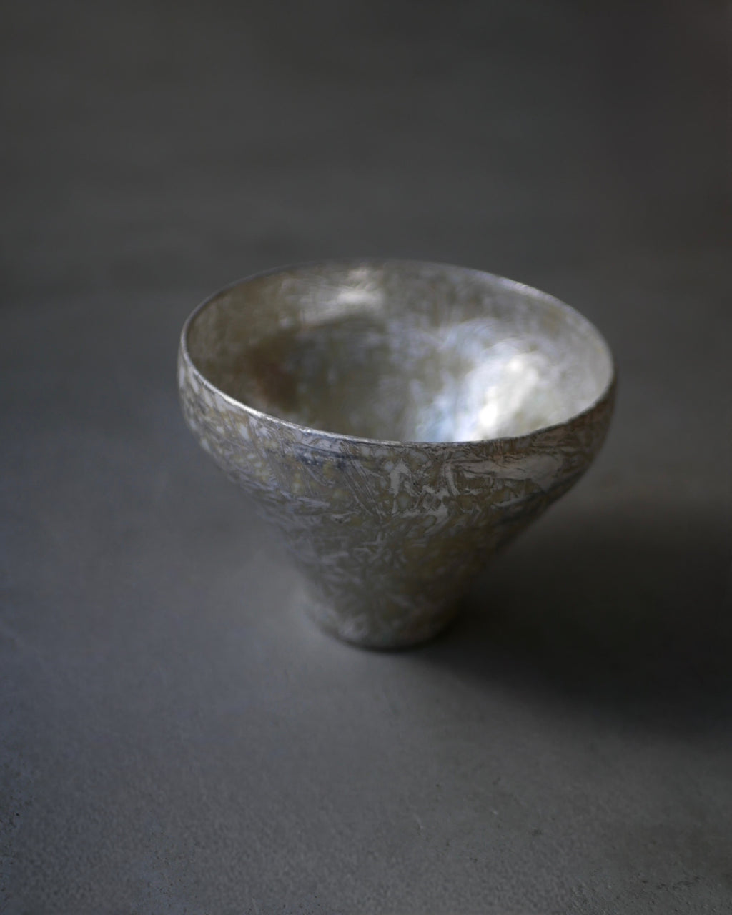 もくもくとたちのぼる煙をイメージした煙銀彩と名付けた抹茶碗。