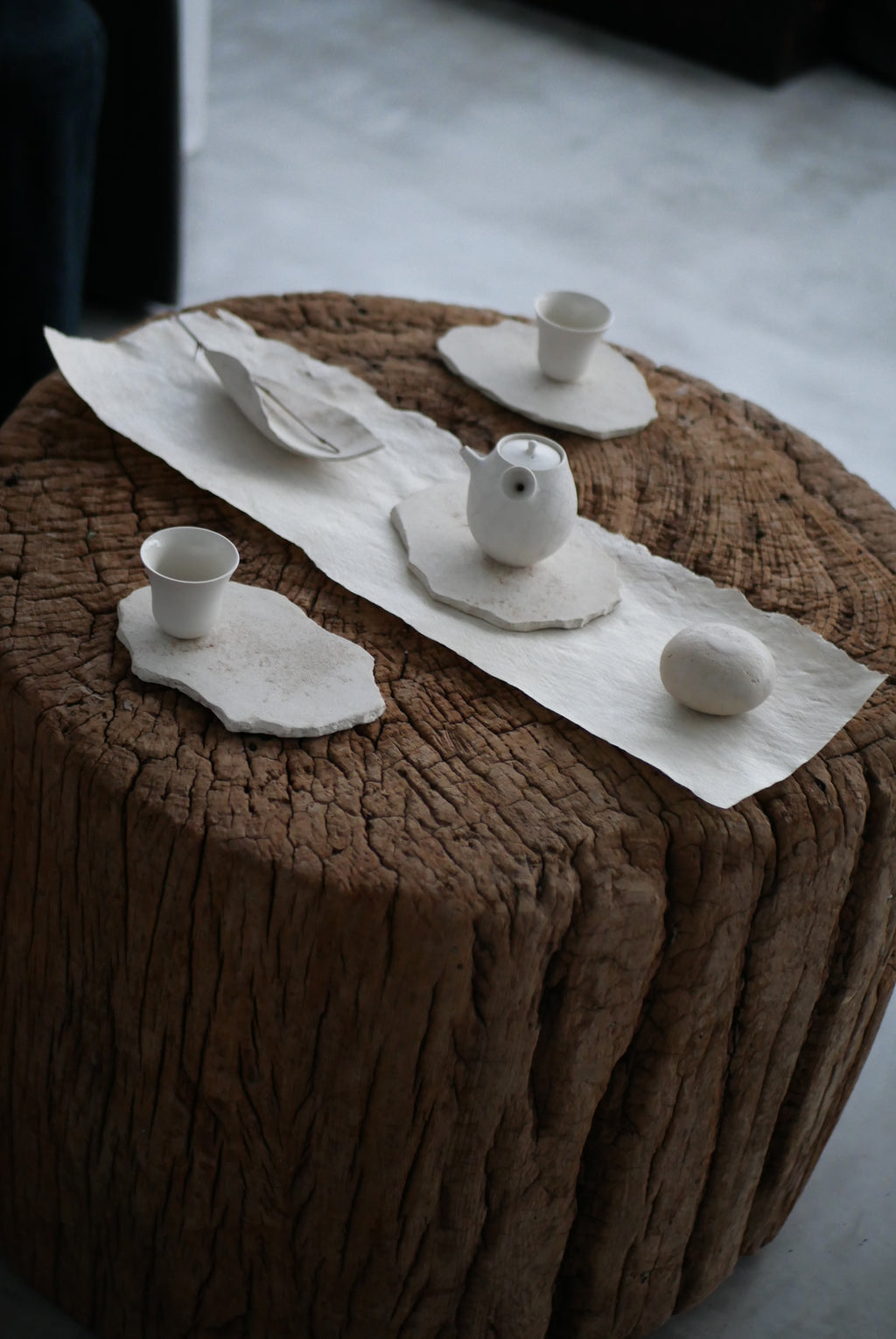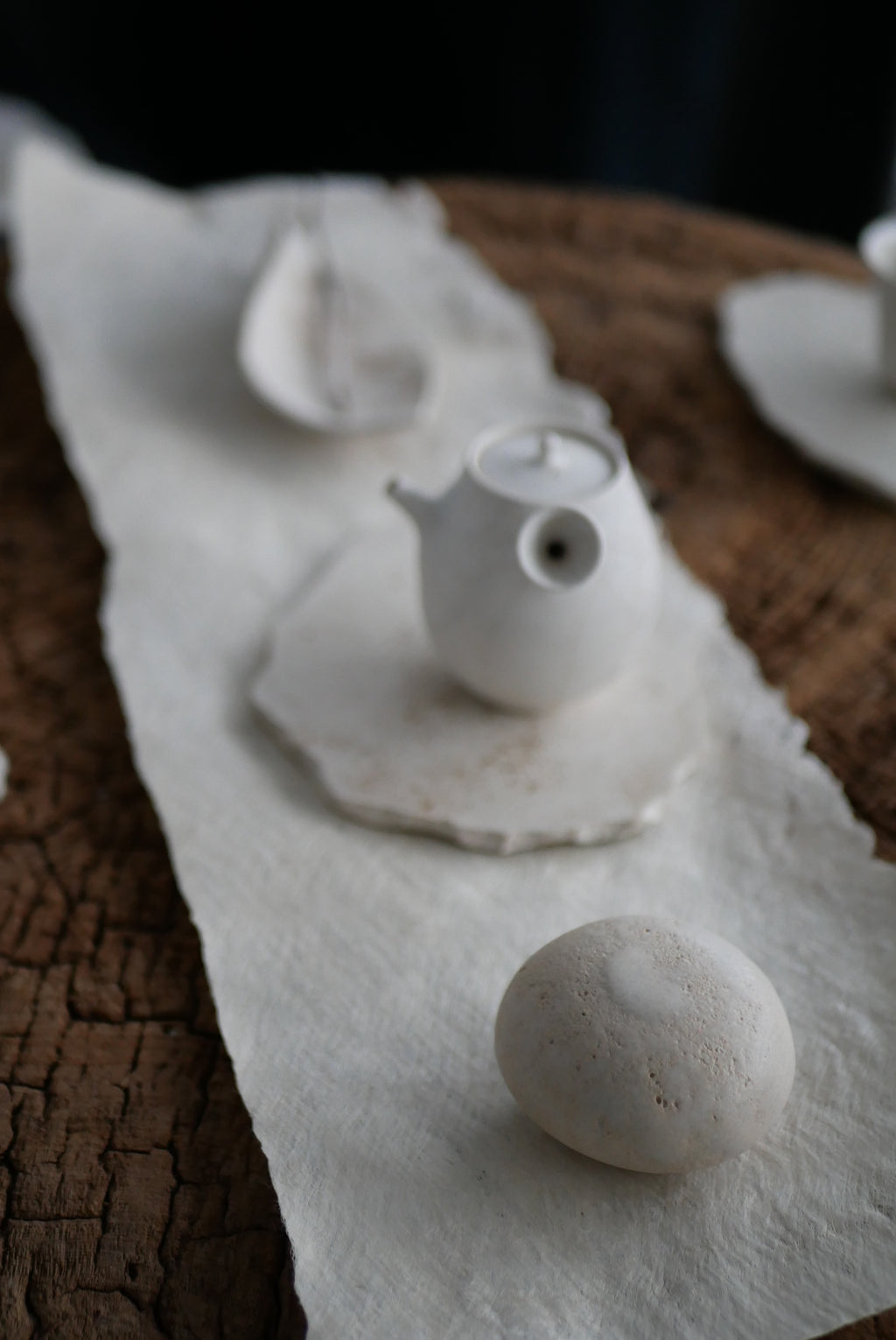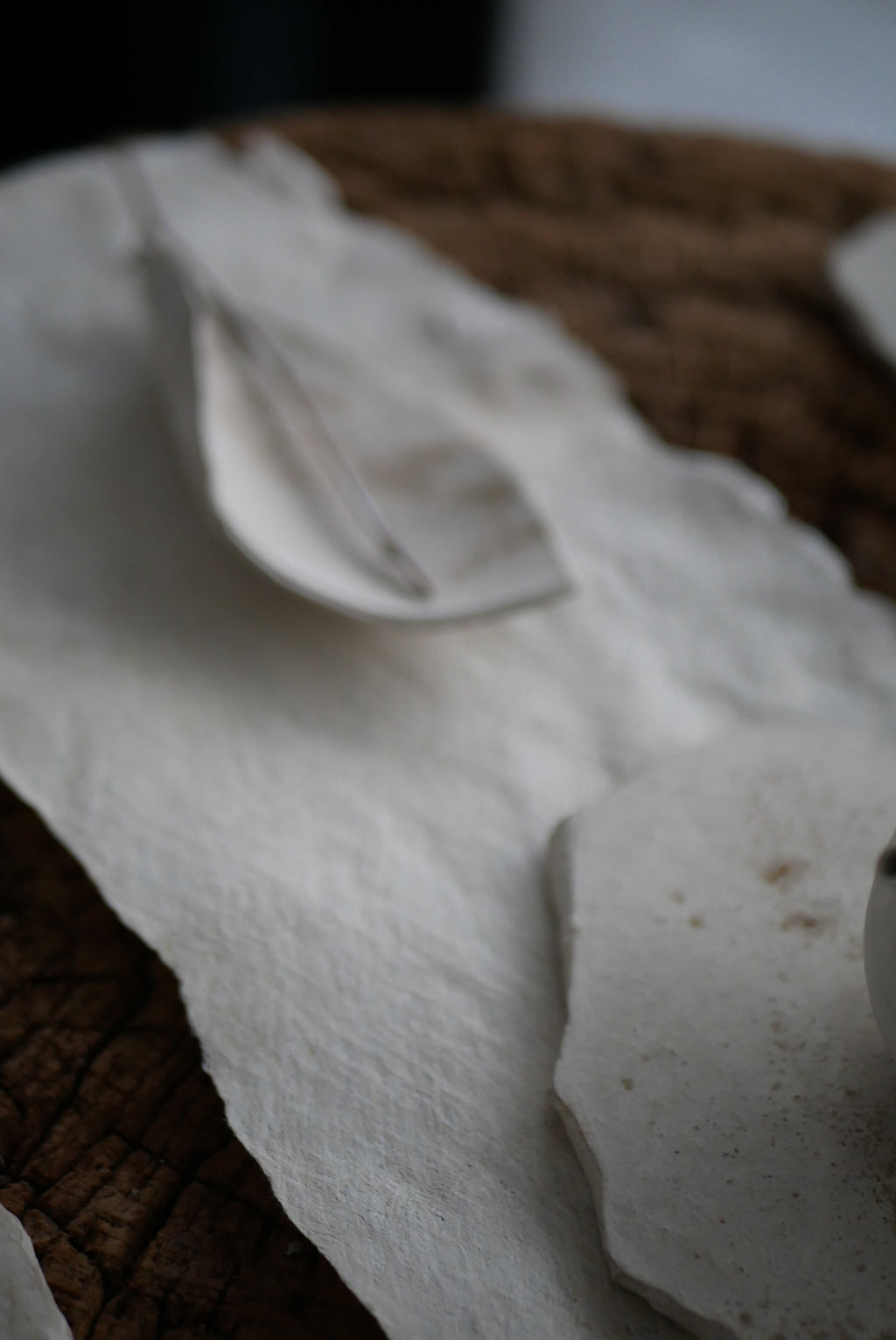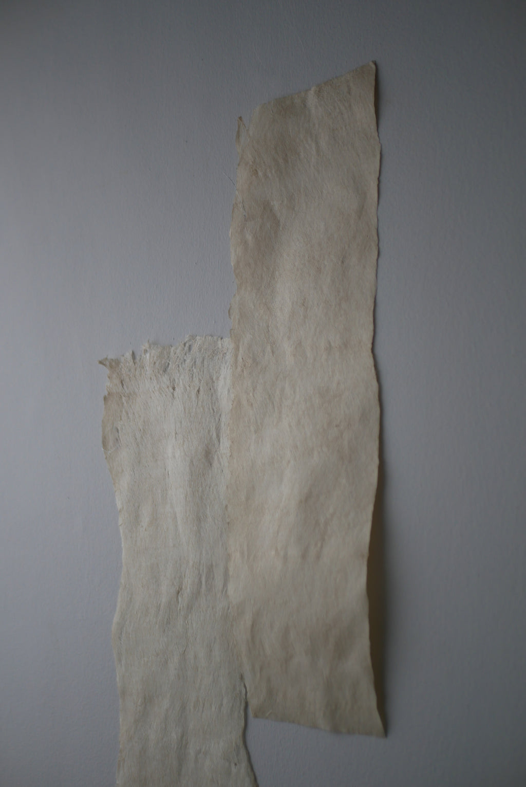 紙か布か、区別なく素材に触れ続ける。叩き、のばし、ひらくという単純な行為を重ねながら、境界をつくらず素材がもつ力そのものがあらわれる形を探究している。