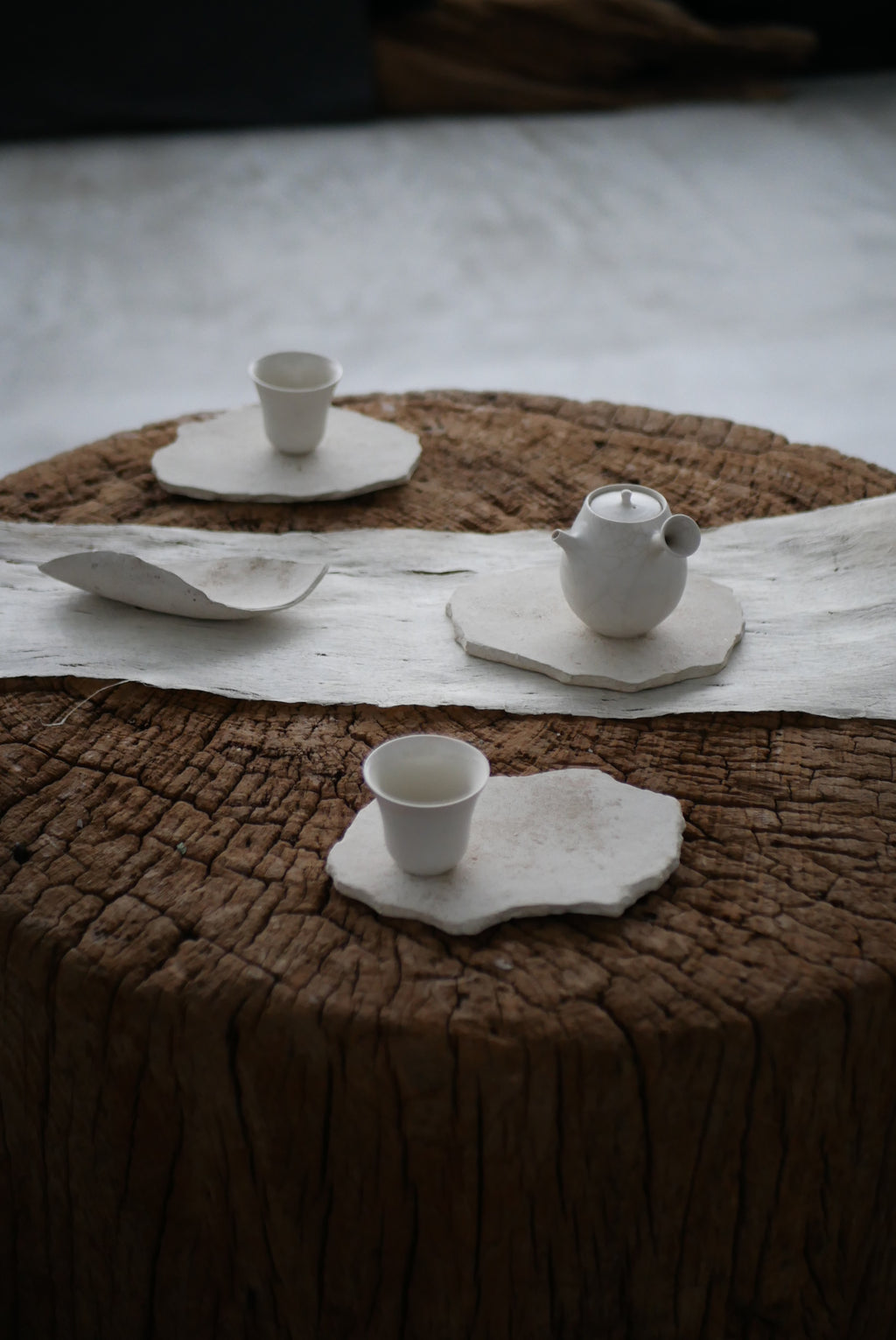 紙か布か、区別なく素材に触れ続ける。叩き、のばし、ひらくという単純な行為を重ねながら、境界をつくらず素材がもつ力そのものがあらわれる形を探究している。