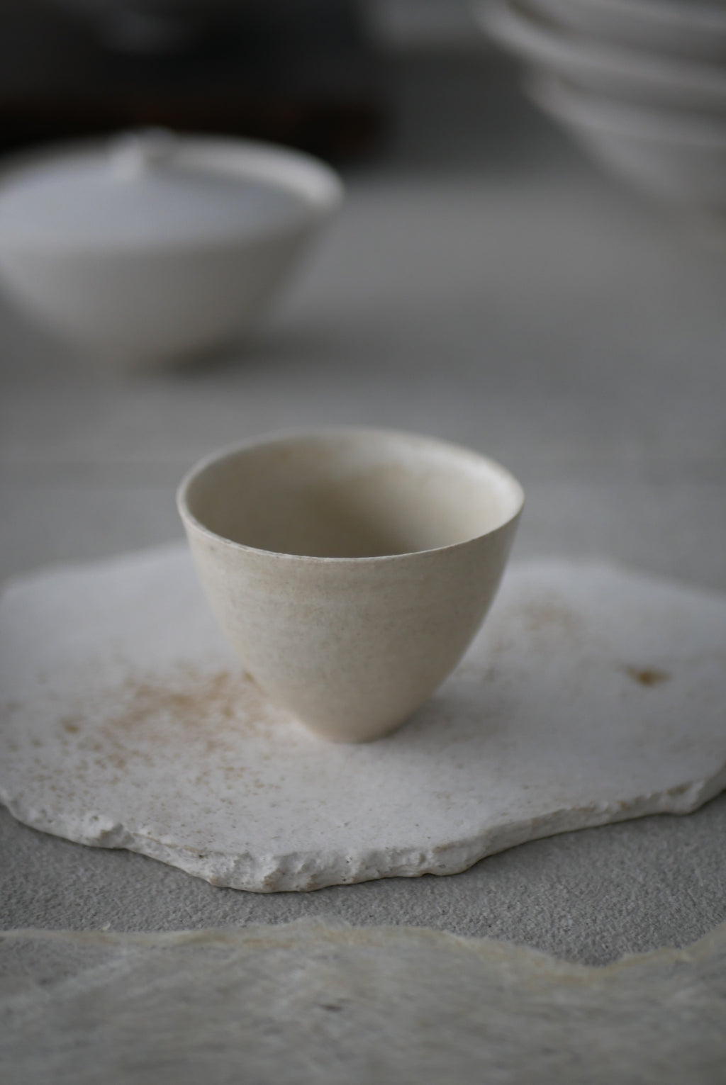 繊細な曲線、掌に馴染む感覚、時間の積み重ねによって深まる美しさを探究する陶芸家。分かりやすい金属由来の釉薬表現に頼ることなく、古くから受け継がれてきた自然由来の素材を用いている。コレクション全体を俯瞰で捉え、異なる土や釉薬を用いながらも、作品同士が自然に響き合う構成が魅力。くつろいだ気配と現代的なモダンさを併せ持つ彼女の作品は、静かな進化を続けている。