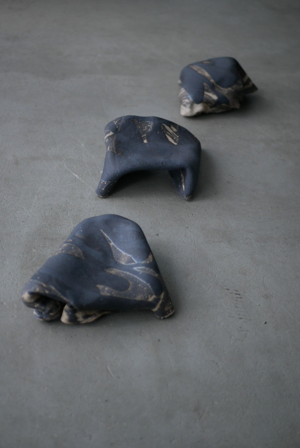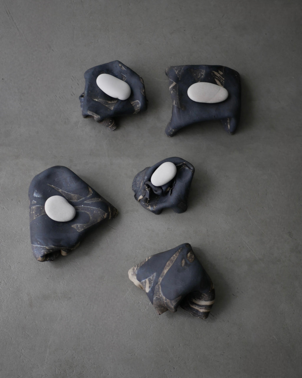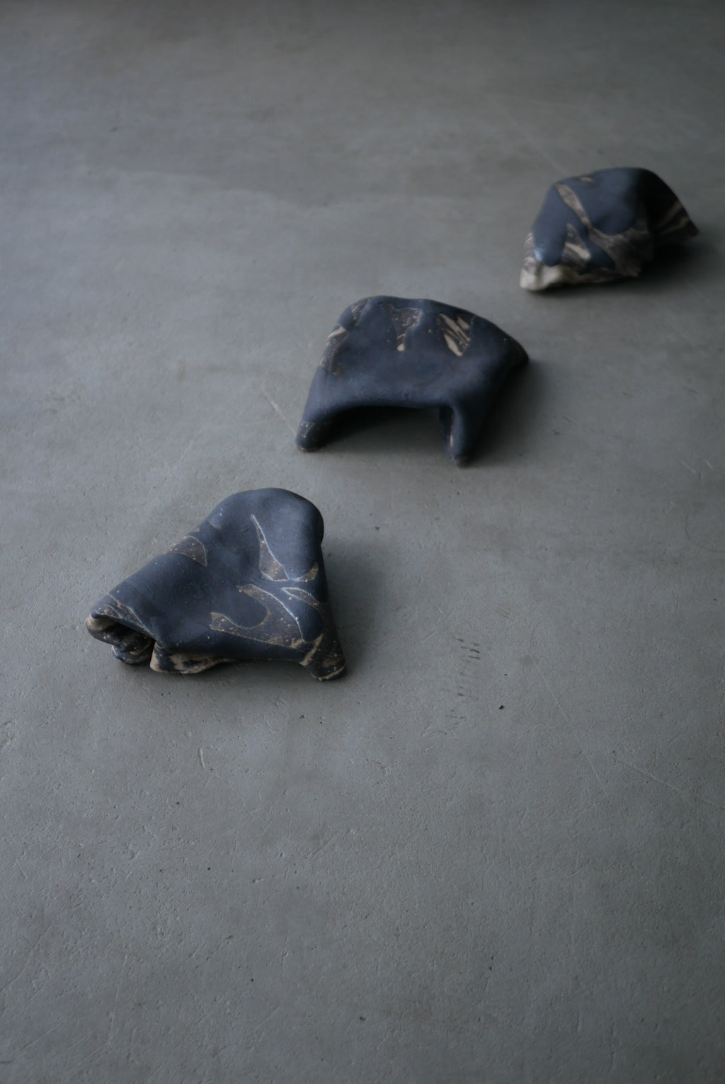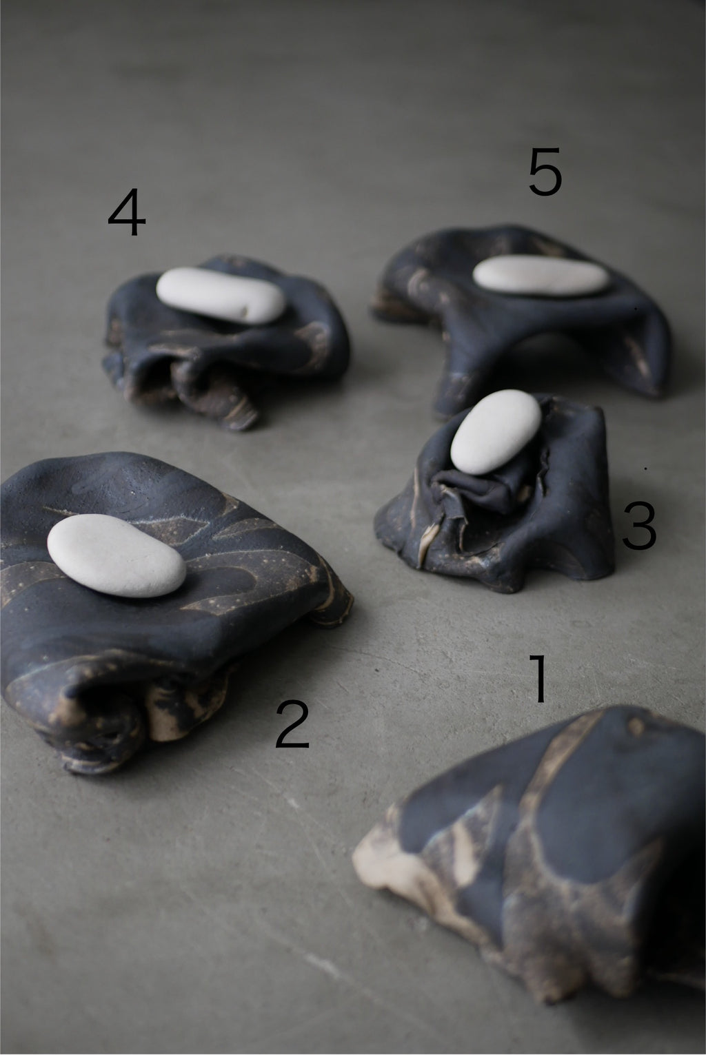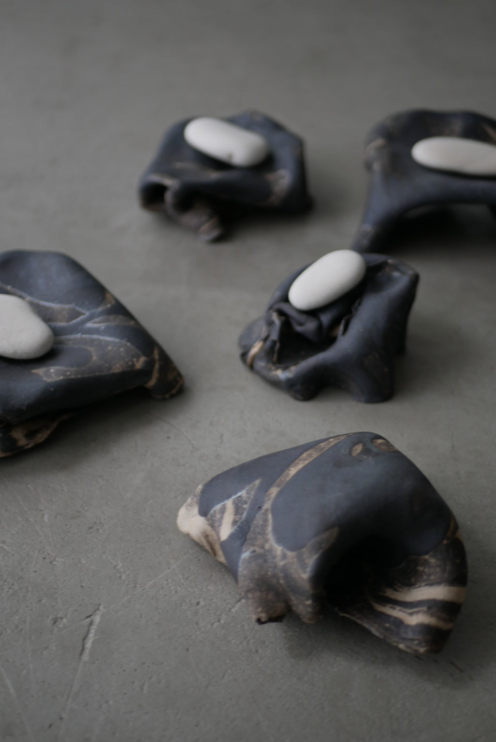 布のような陶土の台皿。今にも歩き出しそうなあやしさとオブジェのような存在感が魅力です。
