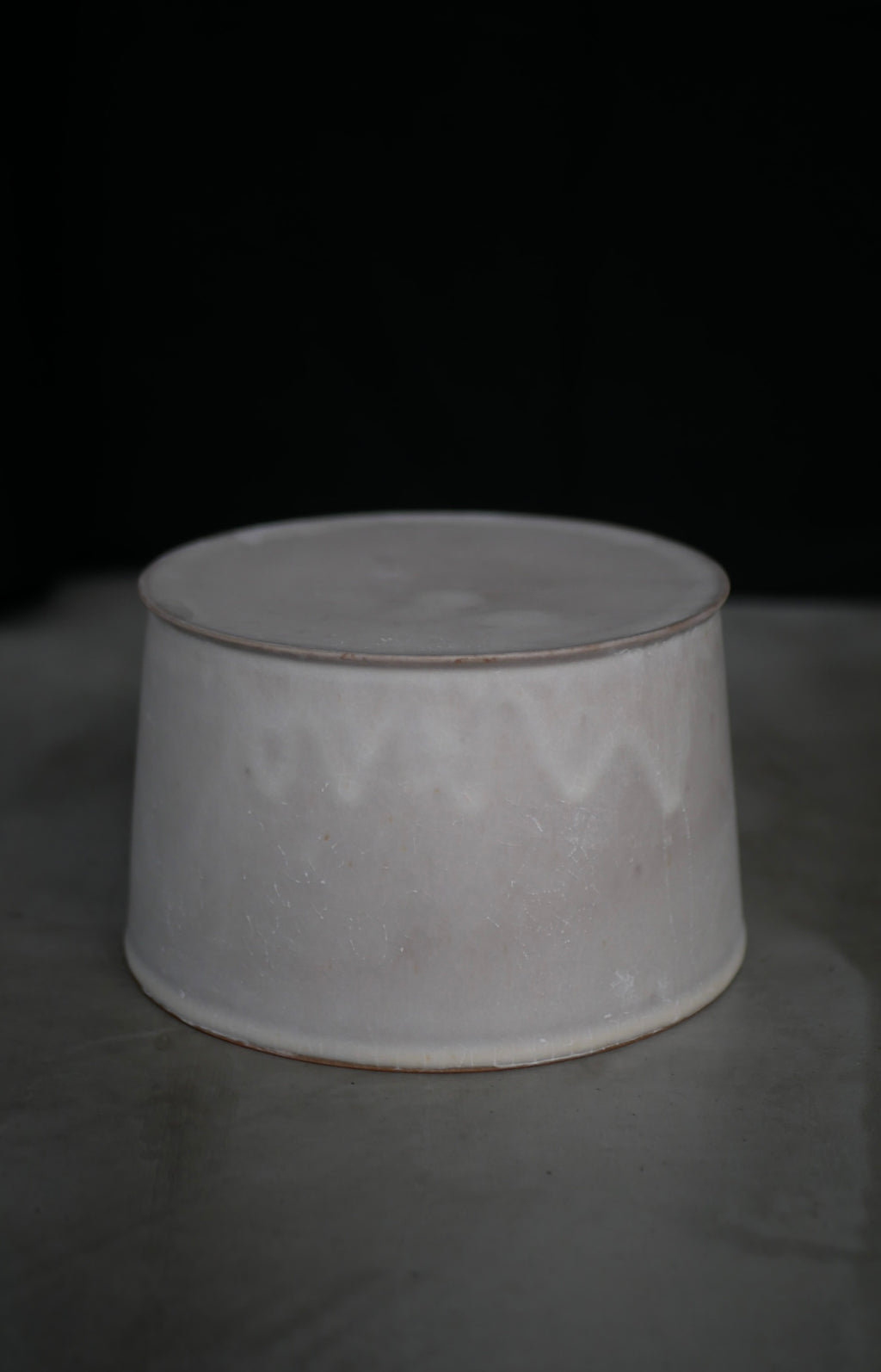 中の黒土が楽焼きの半透明釉から透ける、月のような質感作品。余分な物のないミニマルな姿が潔く、質感の魅力を引き立てています。