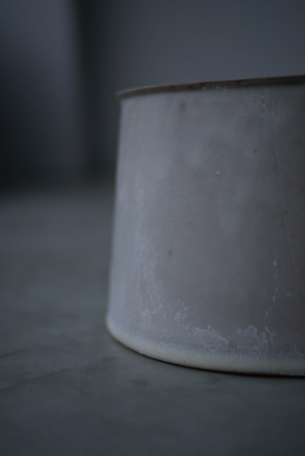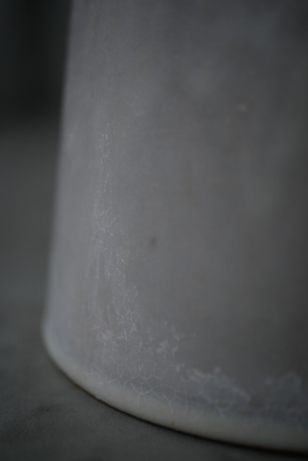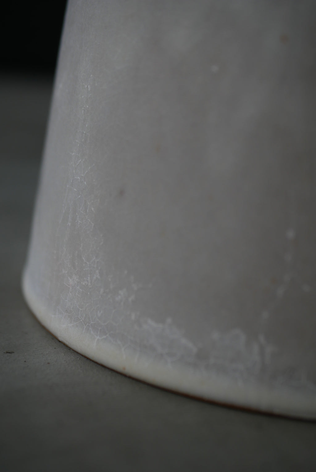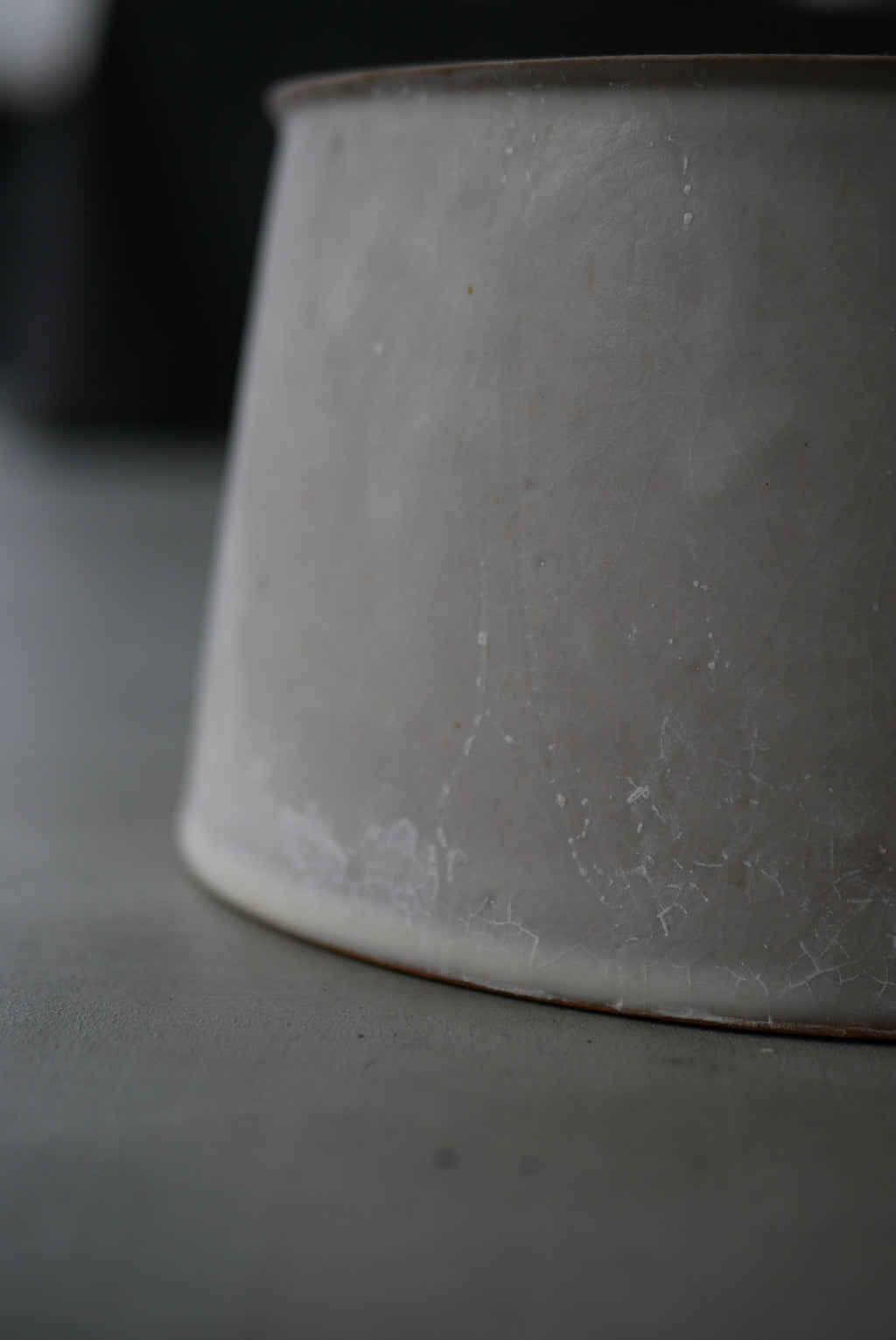 直火、オーブン、電子レンジ、食洗機のご使用はお避け下さい。貫入をデザインとして取り入れた作品です。ご購入時の状態を保ちたい方はキッチン用の漂白剤をお使い下さい。色の濃い飲み物などに使われたり、入れたままにされますと、器に自然と色が入ります。色が入るのを育てて頂いても、漂白剤で元に戻して頂いても、お好みに合わせてお使い下さい。