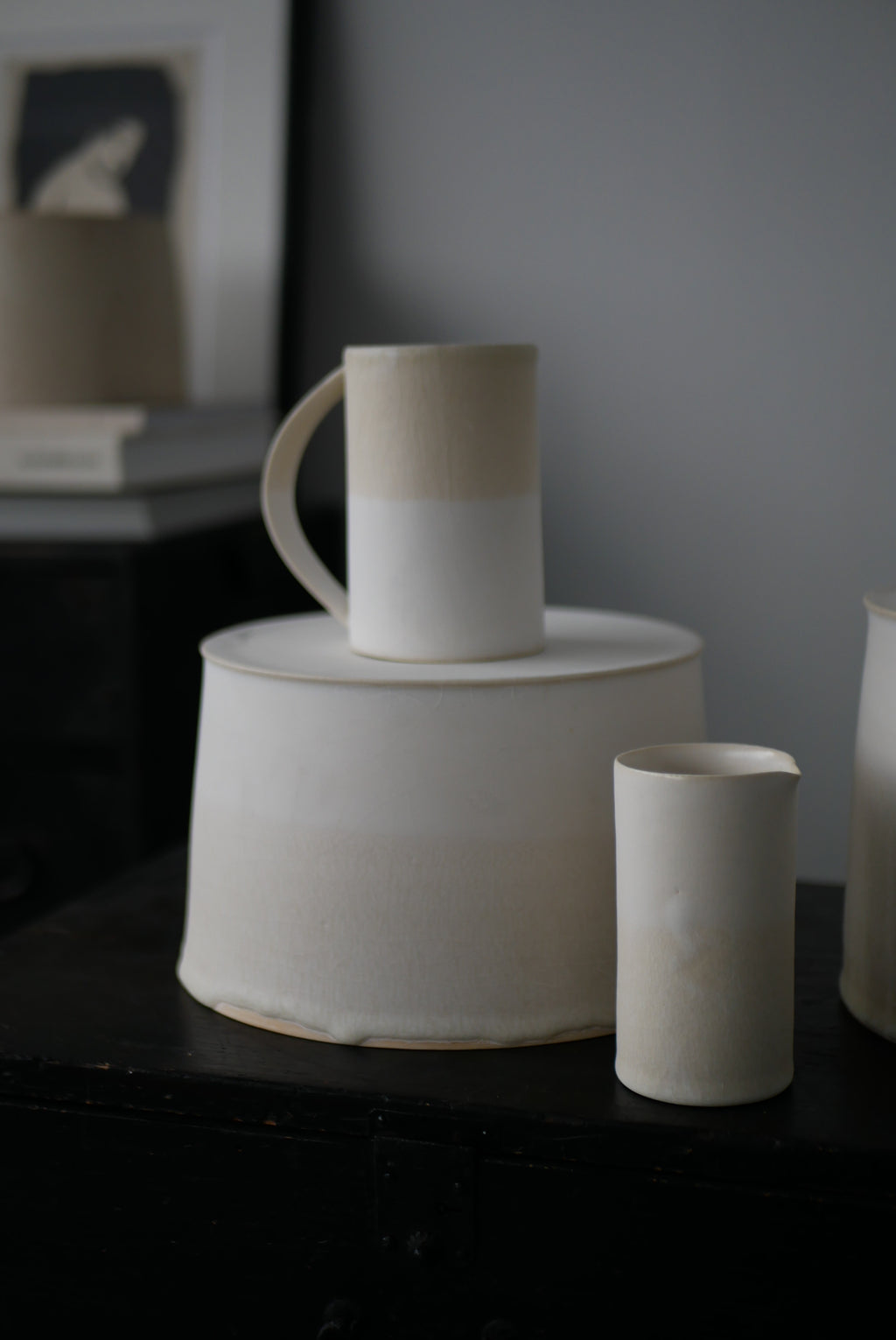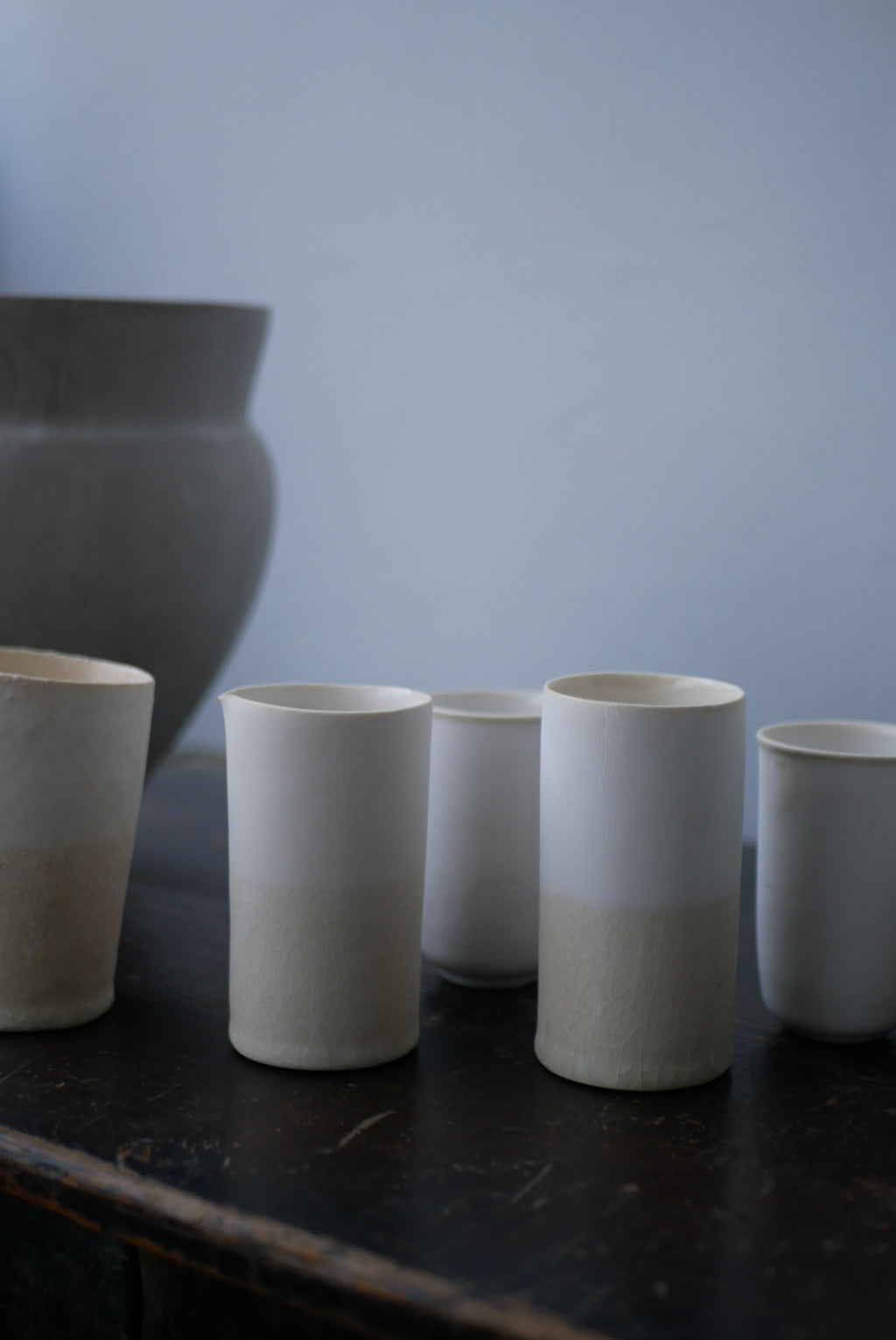 同じ釉かけ分けで筒湯呑みのcup、花器の展開がございます。石肌のシリーズとも相性が良く並べて集めて頂きたい作品です。